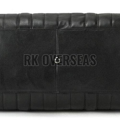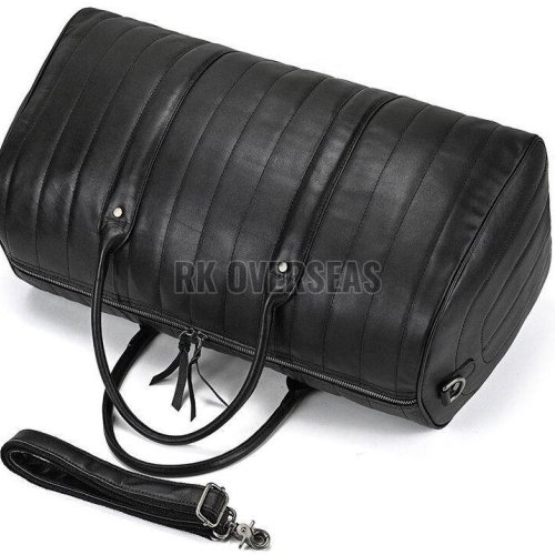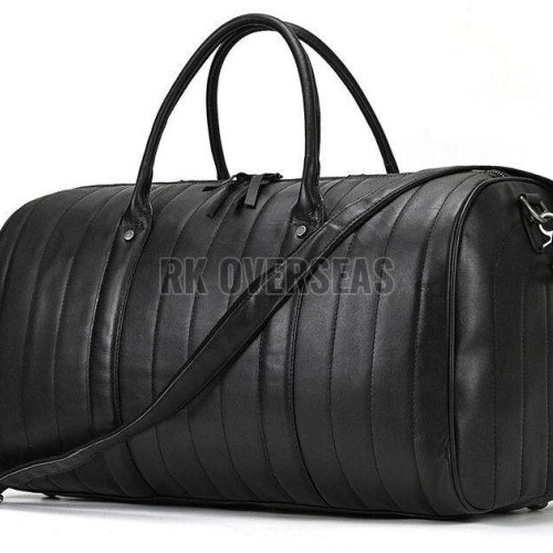 Black Plain Leather Duffle Bag
