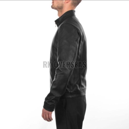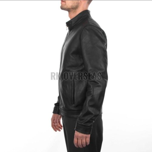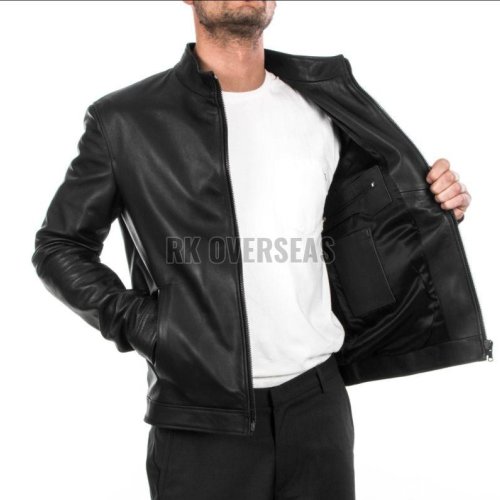 Mens Plain Black Leather Jacket