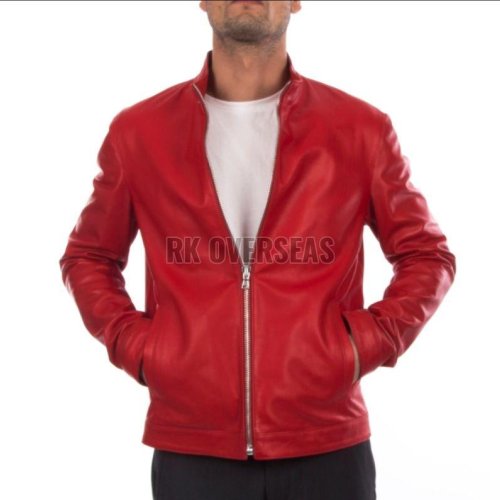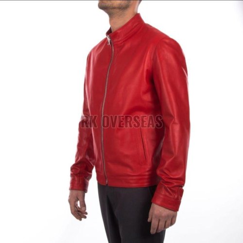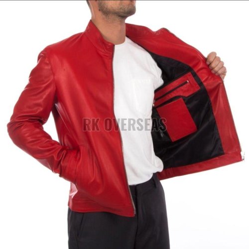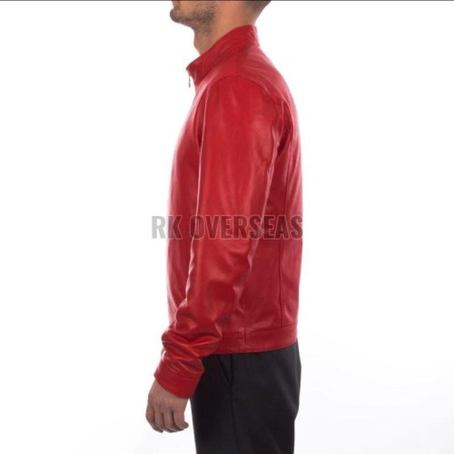 Mens Full Sleeve Red Leather Jacket