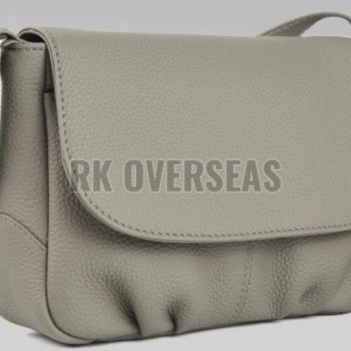 Ladies Plain Grey Leather Crossbody Bag