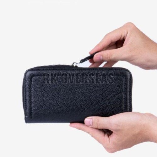 Ladies Plain Black Rectangular Leather Wallet