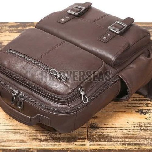 Plain Brown Leather Backpack Bag