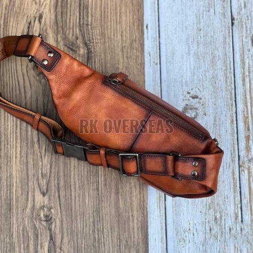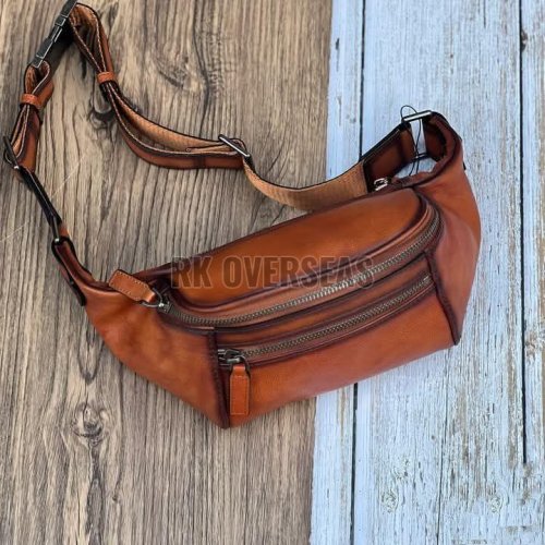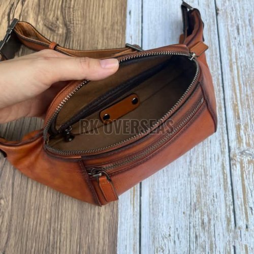 Plain Brown Leather Waist Bag
