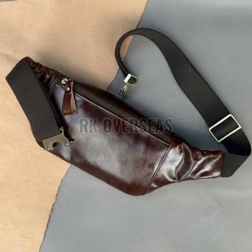 Shiny Brown Leather Waist Bag