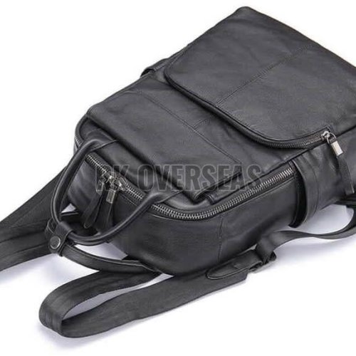 Unisex Black Leather Backpack Bag