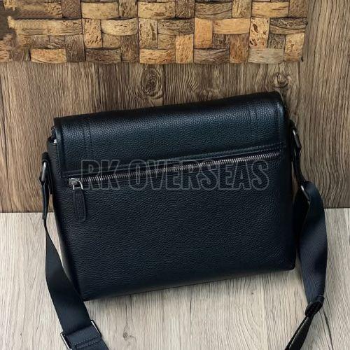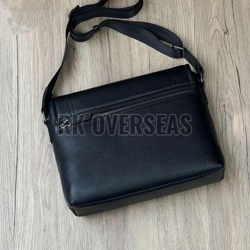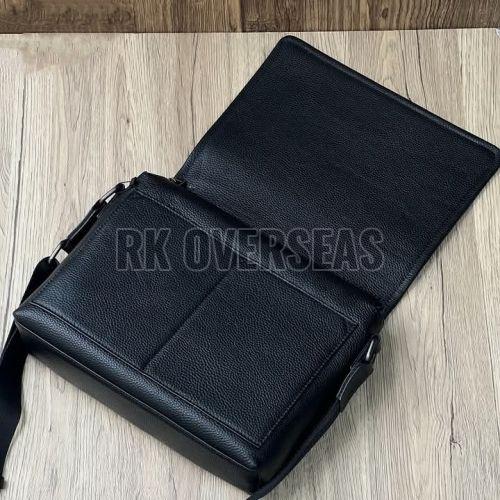 Mens Black Plain Leather Side Bag